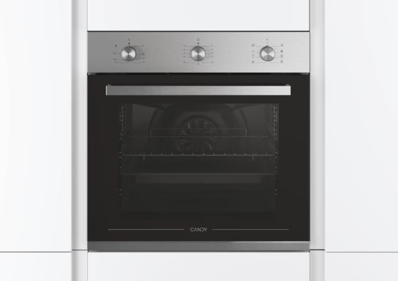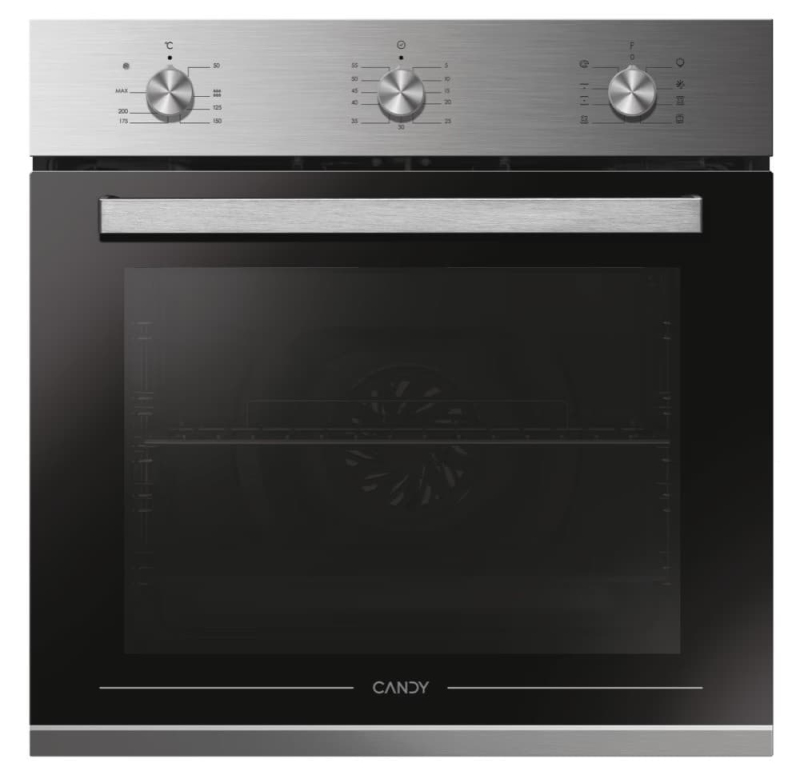 Vestavná trouba Candy v kombinaci nerezu a černého skla má rozměry 610×637×660 mm a patří do energetické třídy A. Vhodná do moderních kuchyní.