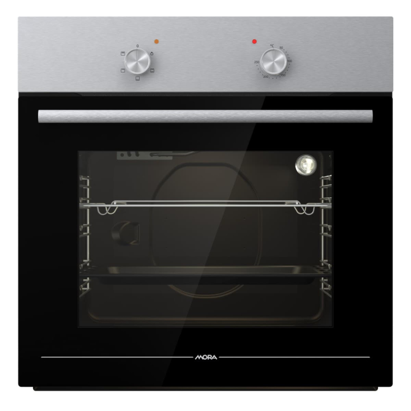 Vestavná trouba elektrická Mora o šířce 59,5 cm, výšce 59,5 cm a hloubce 53 cm. V barevném provedení nerez , spotřebič je vybaven o drátěné rošty a jeho energetická třída je A