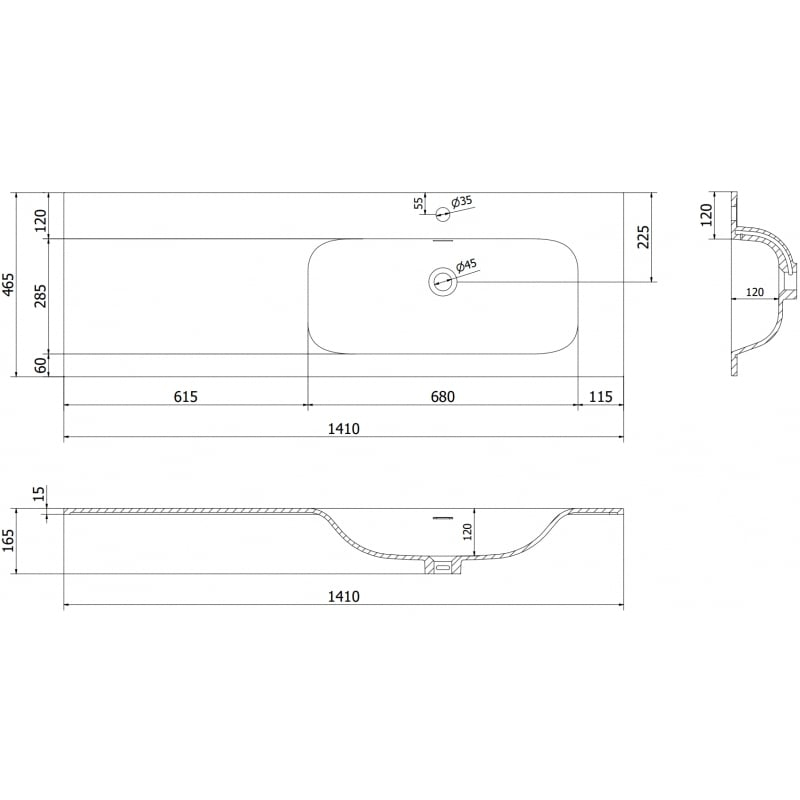 Vestavné umyvadlo Mexen Vela pravé 141 x 46,5 cm, lesklá bílá - 25231400P