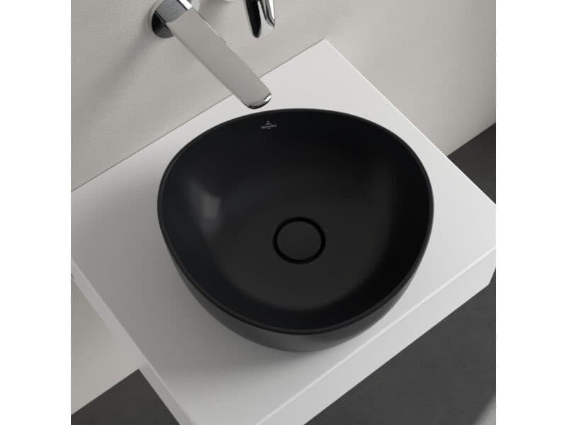 Villeroy & Boch Antao umyvadlo na desku 40x39,5 cm, bez přepadu, Ceramic Plus, Pure Black, 4A7240R7