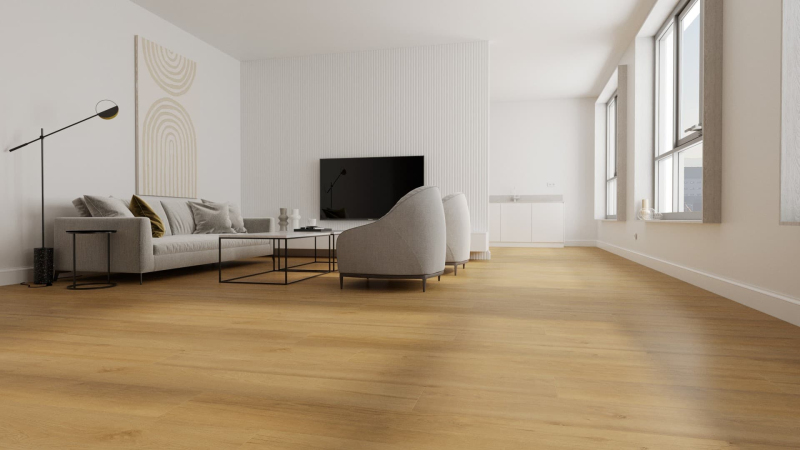 Voděodolná vinylová podlaha v dekoru Oak Midland 152,4 x 22,86 s mikro V drážkou, určená k instalaci lepením k podkladu