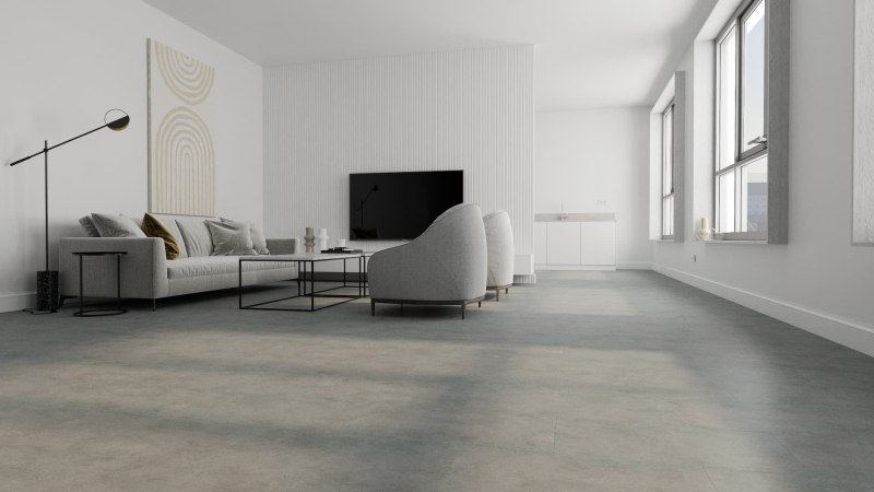 Vinylová podlaha v dekoru šedá o rozměru 60,96x30,48 cm se systémem instalace lepením.
