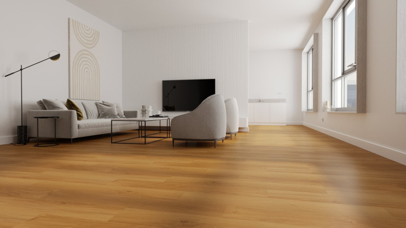 Vinylová podlaha v dekoru dřevodekor dub o rozměru 121,92x17,78 cm se systémem instalace lepením.