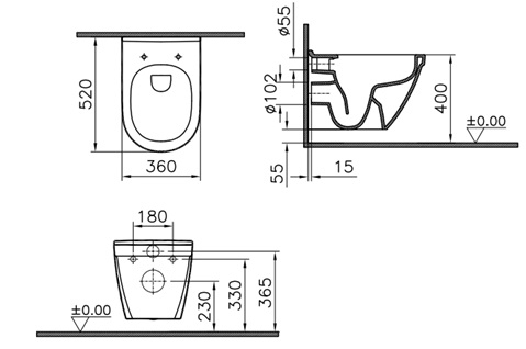 Závěsné WC Vitra S50, zadní odpad, 52cm.