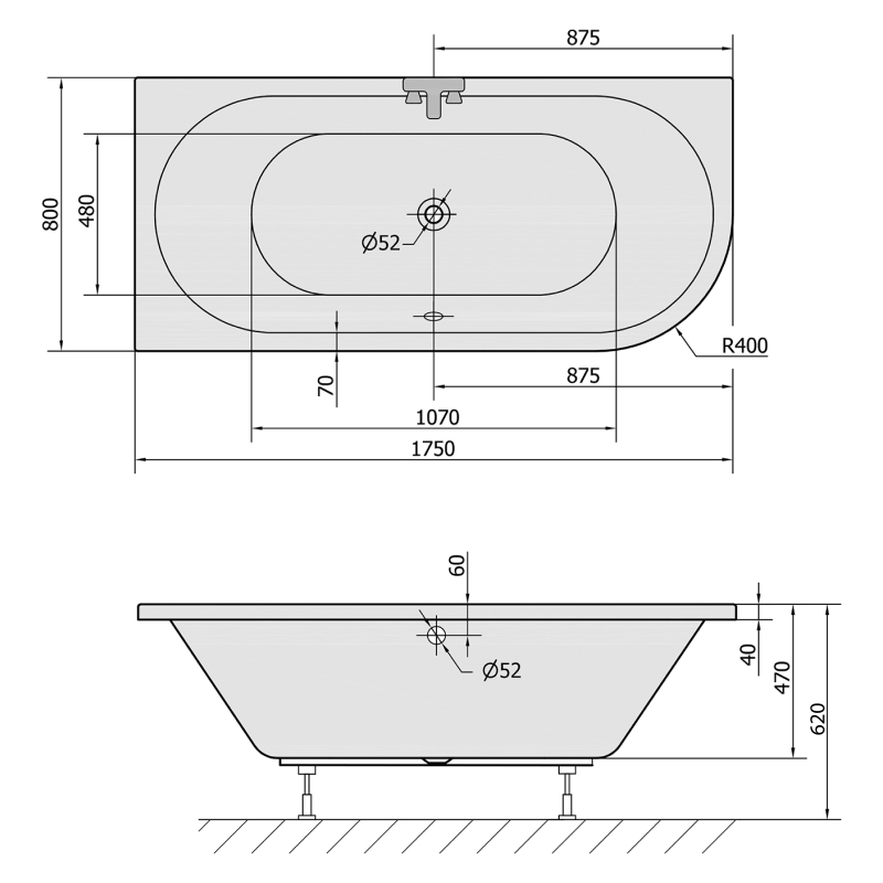 VIVA L asymetrická vana 175x80x47cm, bílá 70119