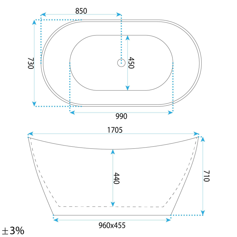 REA Volně stojící akrylátová vana Ferrano Slim Nature 170 KPL-W6505