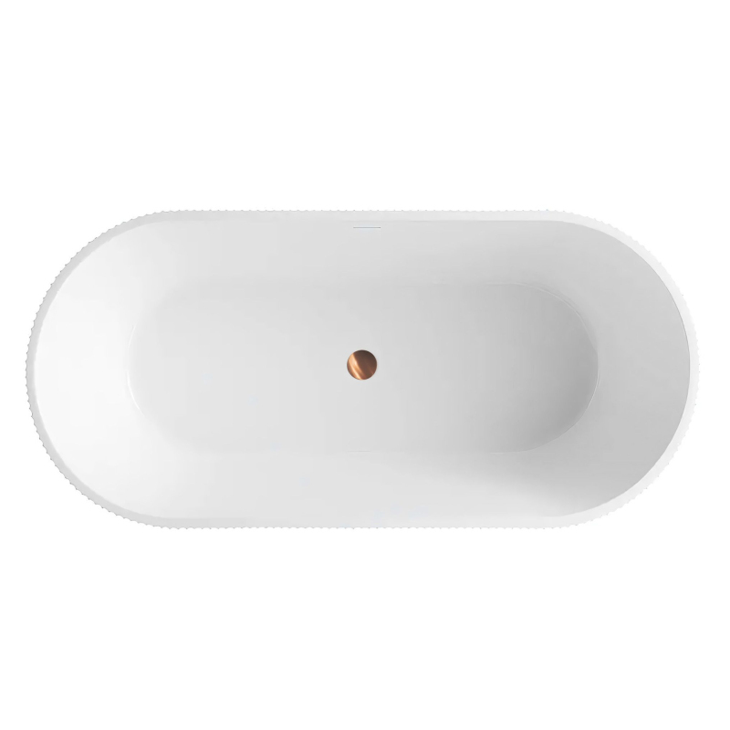 Vana Ofelia je dokonalou kombinací designu a funkčnosti, vytvořená pro ty, kteří si cení pohodlí a vytříbené estetiky. Její rýhovaný povrch dodává celku jedinečný charakter a přináší jemný dekorativní prvek, který podtrhuje moderní styl koupelny. Vyrobena z vysoce kvalitního akrylu, vana Ofelia zaujme dokonale hladkým povrchem a odolností proti poškrábání, přičemž je lehká a trvanlivá. Akryl výborně udržuje teplotu vody, což umožňuje dlouhé a relaxační koupele. Ergonomický tvar zajišťuje pohodlnou oporu těla a maximální komfort i při delším odpočinku. Díky své volně stojící konstrukci lze vanu Ofelia umístit kamkoliv v koupelně — ke zdi, do rohu nebo doprostřed místnosti, čímž vytváří elegantní a harmonický prostor. Rýhovaná boční struktura krásně odráží světlo a dodává interiéru hloubku a kouzlo.