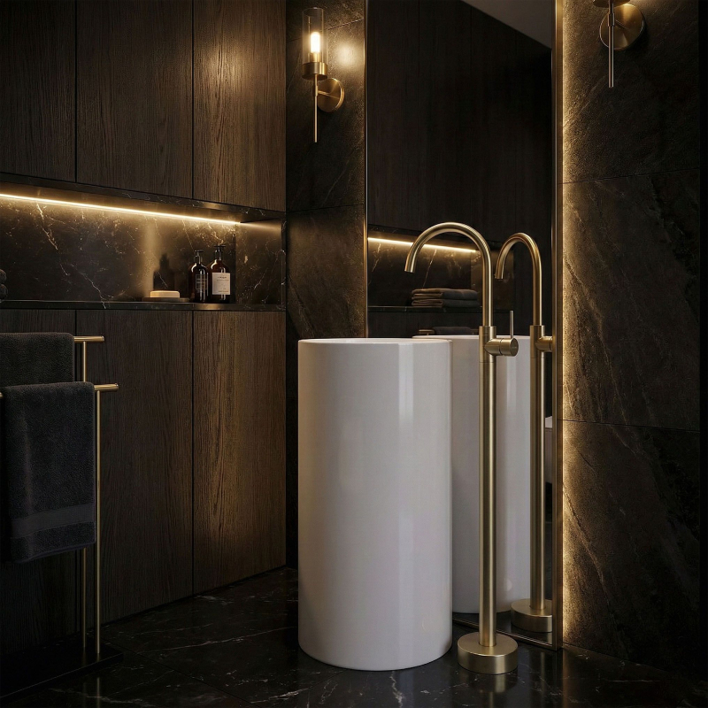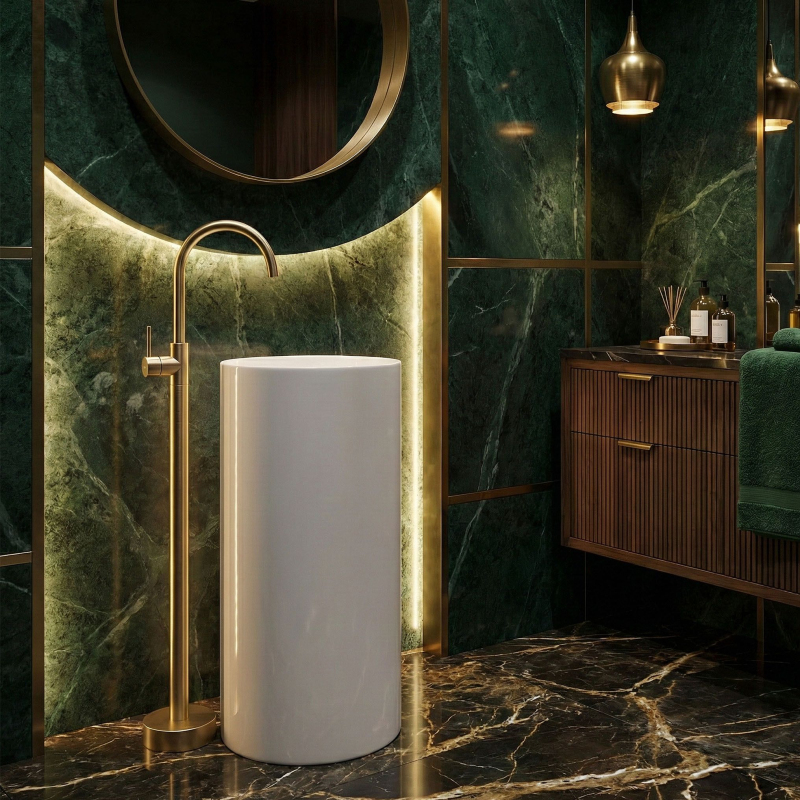 Objevte novou definici luxusu ve své mycí zóně díky podlahové umyvadlové baterii Rea Lungo. Toto mimořádně designové a funkční řešení představuje dokonalou alternativu k tradičním nástěnným či stojánkovým bateriím. Produkt byl navržen pro moderní, prostorné koupelny, kde každý detail hraje roli v konečném výsledku uspořádání.Podlahová montáž – umožňuje volné uspořádání prostoru a ideální přizpůsobení volně stojícím umyvadlům.Vysoká konstrukce – zajišťuje maximální komfort používání a volnost pohybu při každodenní hygieně.Provedení z mosazi – zaručuje dlouhou životnost, odolnost proti korozi a spolehlivý provoz.Keramická kartuše – umožňuje plynulou a přesnou regulaci proudu vody a teploty.Designový profil – štíhlá linie série Lungo dodává interiéru lehkost a podtrhuje prestižní charakter koupelny. Podlahová umyvadlová baterie Rea Lungo je volbou pro ty, kteří chtějí překročit zažité schéma a vnést do interiéru moderní nádech. Díky své jedinečné formě se skvěle hodí k volně stojícím umyvadlům a vytváří s nimi jednotný a elegantní celek. Volbou tohoto modelu Rea získáte jistotu nejvyšší kvality zpracování a výrazný dekorativní prvek, který upoutá pozornost každé návštěvy.