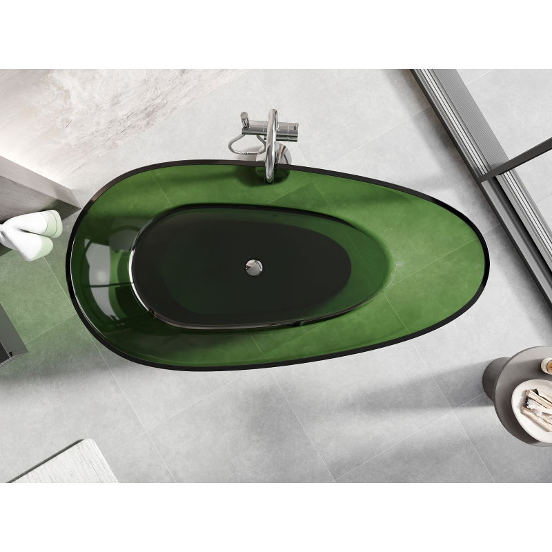 Specifikace produktu: Rozměry: 170 x 85 cm Výška: 55 cm Hloubka: 43,5 cm Instalace: Volně stojící Materiál: Syntetická pryskyřice Barva: Zelená Povrchová úprava: Chrom Otvor pro přepad: Ne Otvor pro baterii: Ne Sifon a zátka click-clack součástí balení Průhledný povrch Odolné vůči baterii, baterii a UV záření