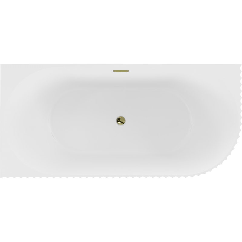 Volně stojící rohová vana Mexen Gia, drážkovaná, levá, 150 x 75 cm, matná bílá, zlatý přepad - 52701507501L-50
