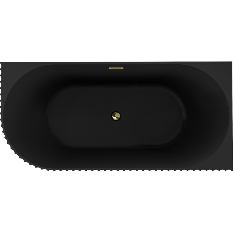 Volně stojící rohová vana Mexen Gia, drážkovaná, pravá, 150 x 75 cm, matná černá, zlatý přepad - 52701507571P-50