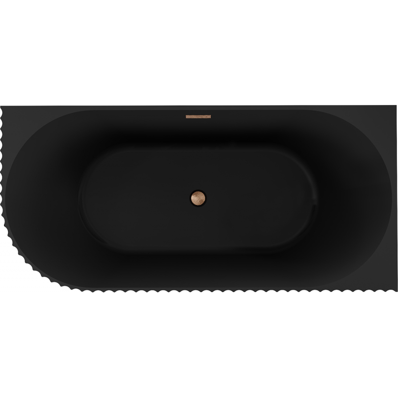 Volně stojící rohová vana Mexen Gia, drážkovaná, pravá, 170 x 80 cm, matná černá, přepad kartáčovaná měď - 52701708071P-65