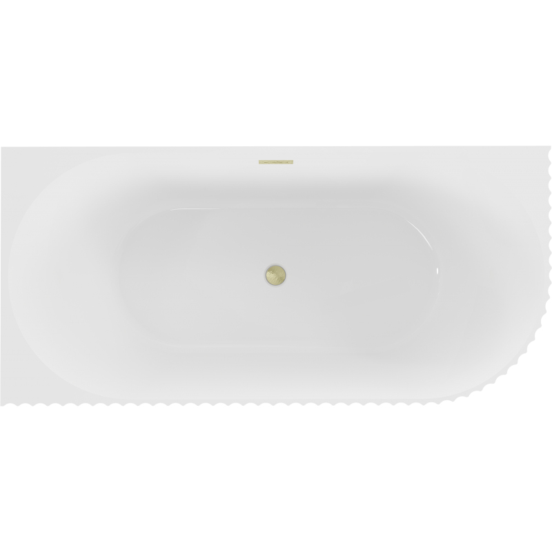 Volně stojící rohová vana Mexen Gia s drážkovaným přepadem levá 170 x 80 cm, lesklá bílá, přepad kartáčovaný zlatý - 52701708000L-55