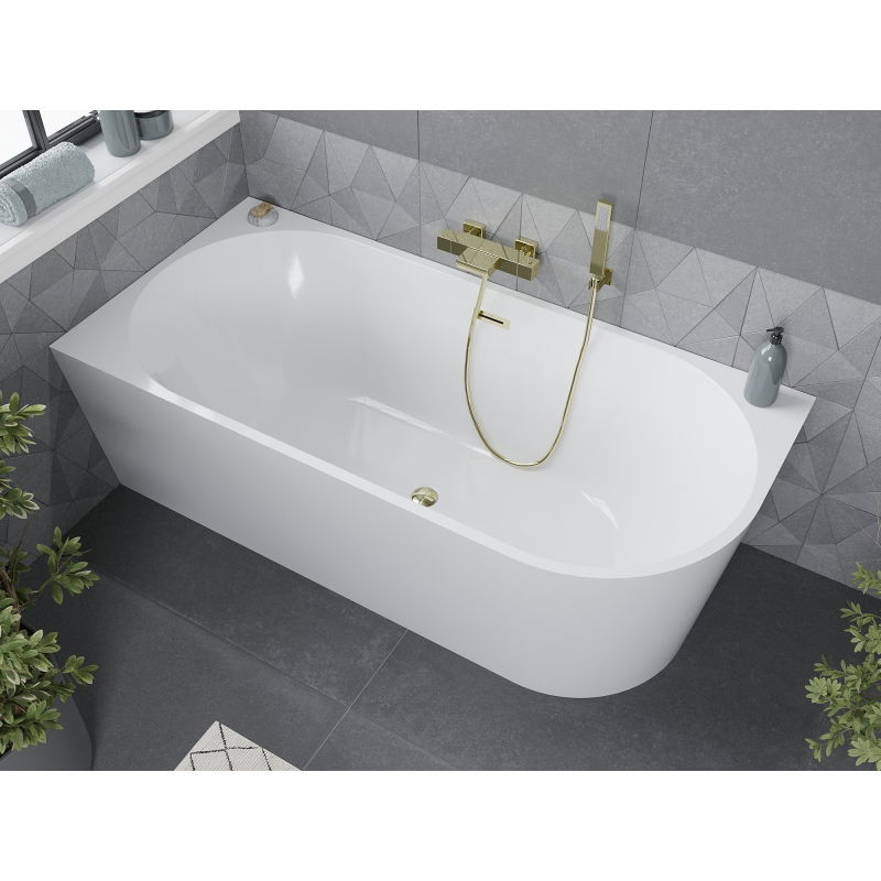Volně stojící rohová vana Mexen Mia levá 140 x 75 cm, bílá, zlatý přepad - 52691407500L-50