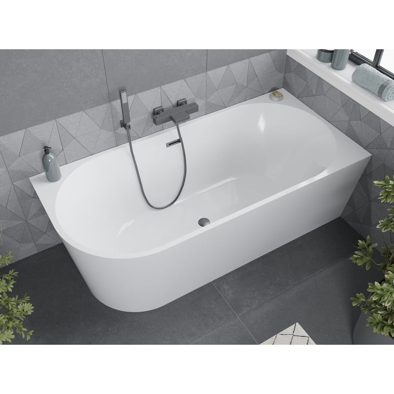Volně stojící rohová vana Mexen Mia, pravá, 170 x 80 cm, bílá, kartáčovaný přepad v barvě pistole šedé - 52691708000P-66