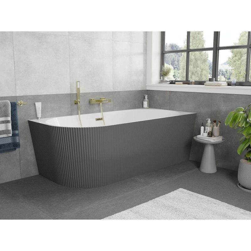 Volně stojící rohová vana Mexen Silo, pravá, s drážkou, 170 x 80 cm, bílá/šedá, zlatý přepad - 52891708062P-50