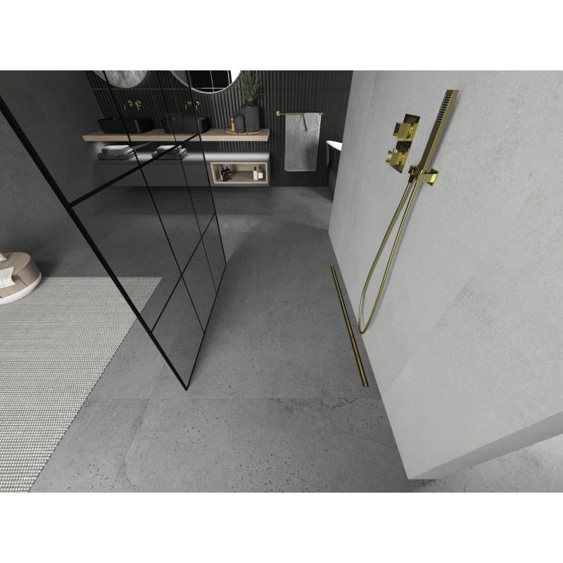 Volně stojící sprchová zástěna Mexen Kioto 110 x 200 cm, černá mřížka 8 mm, zlatá - 800-110-002-50-77