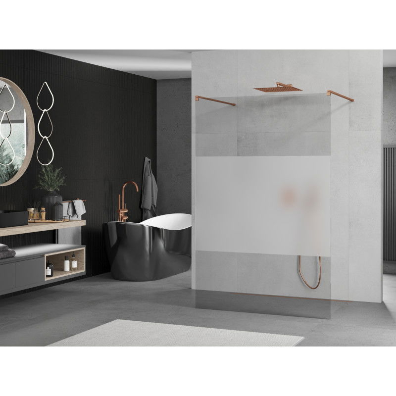 Volně stojící sprchová zástěna Mexen Kioto 110 x 200 cm, průhledná/matná 8 mm, růžové zlato - 800-110-002-60-35