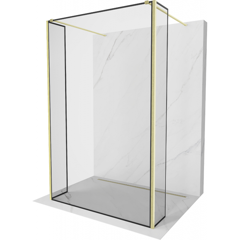 Volně stojící sprchová zástěna Mexen Kioto 140 x 30 x 30 cm, černý rám, kartáčované zlato - 800-140-030-222-55-70-030