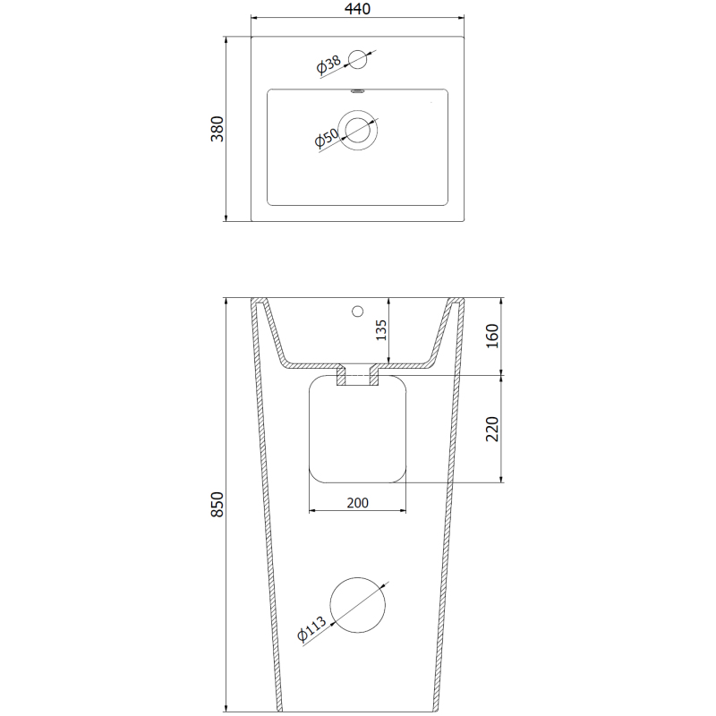 Volně stojící umyvadlo Mexen Liza 44 x 38 cm, matná černá - 26154470