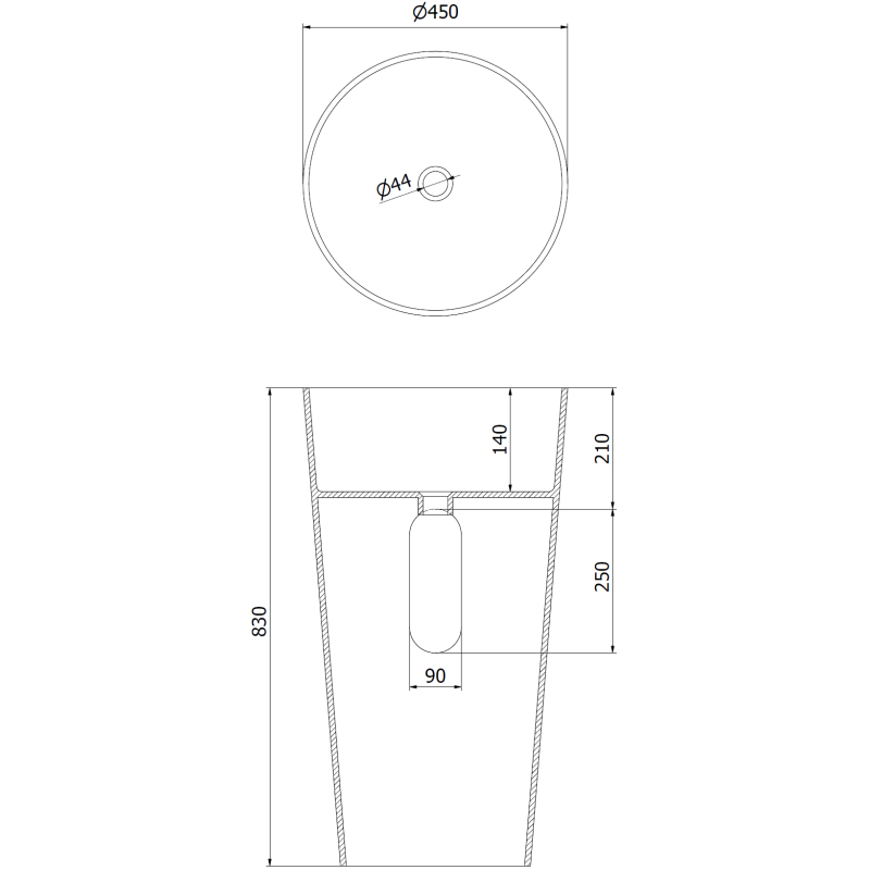 Specifikace produktu: Rozměr: 45x45x83 cm Hloubka: 14 cm Typ: Volně stojící Barva: Matná bílá Materiál: Konglomerát Otvor pro přepad: Ne Otvor pro baterii: Ne