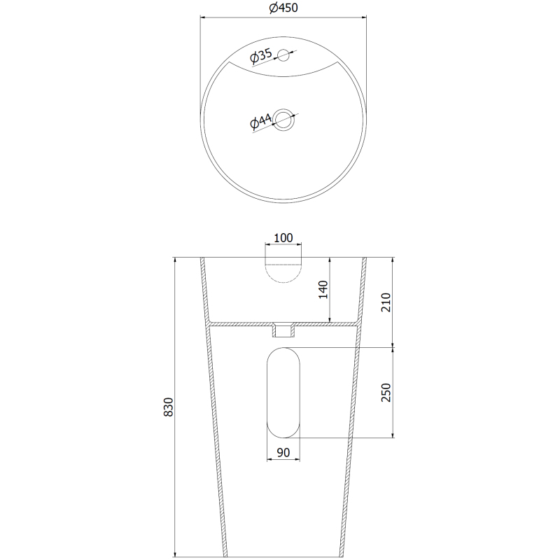 Specifikace produktu: Rozměr: 45x45x83 cm Hloubka: 14 cm Typ: Volně stojící Barva: Matná bílá Materiál: Konglomerát Otvor pro přepad: Ne Otvor pro baterii: Ano