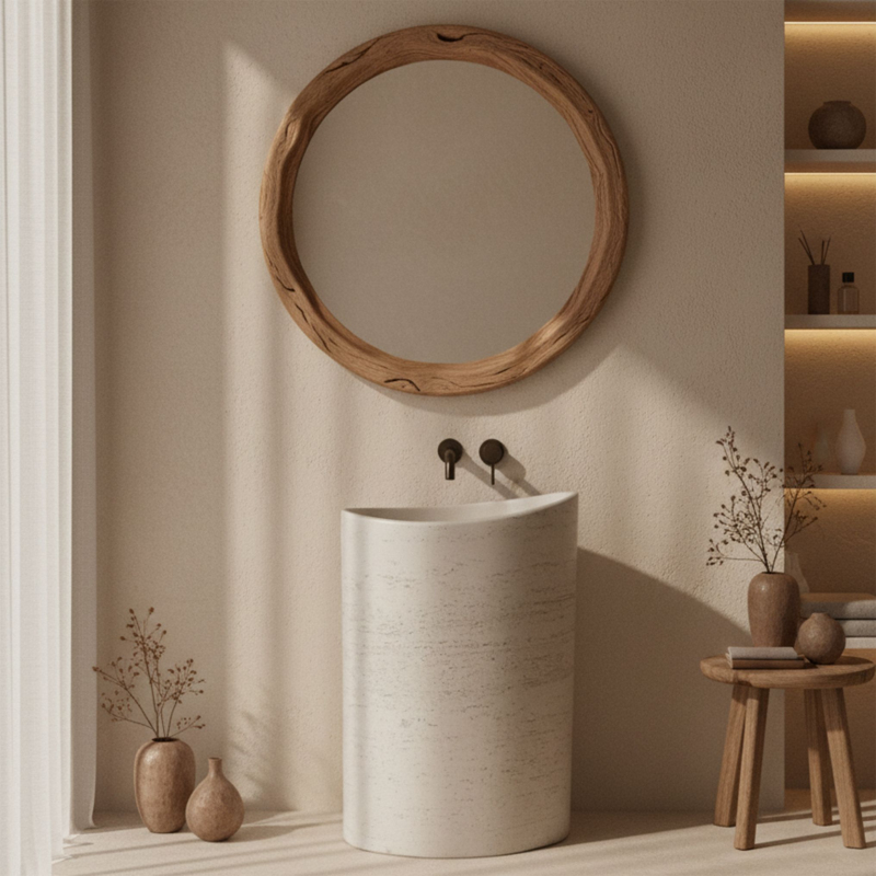 Objevte krásu syrové přírody v moderním pojetí díky volně stojícímu umyvadlu Rea Merlo. Tento výjimečný model je poctou organickému designu, ve kterém tvar vychází z inspirace přírodou. Umyvadlo je vyrobeno z pokročilého kompozitu Artificial Stone a zaujme matnou, porézní strukturou, která věrně připomíná přírodní pískovec nebo travertin.Materiál Artificial Stone – moderní konglomerát spojuje syrový vzhled kamene s výbornými užitnými vlastnostmi: je mimořádně odolný, rezistentní vůči poškození a příjemně teplý na dotek.Unikátní textura – povrch není hladký; má jemné, nepravidelné póry a žlábky, které mu dodávají autentický, řemeslný charakter stylu wabi-sabi.Monolitická forma – jednolitý blok montovaný přímo na podlahu působí velmi reprezentativně a stává se hlavním dekorativním prvkem koupelny.Bez otvoru pro baterii – čistá, nenarušená linie mísy je navržena pro moderní nástěnné (podomítkové) baterie nebo vysoké podlahové baterie.Organický tvar – jemně zaoblené hrany a měkké linie mísy přinášejí do prostoru klid a harmonii.Umyvadlo Rea Merlo je volbou pro ty, kteří chtějí proměnit koupelnu v domácí útočiště. Jeho kamenná estetika skvěle zapadá do stylu boho, japandi i moderního a vytváří ideální kulisu pro relaxační každodenní rituály.