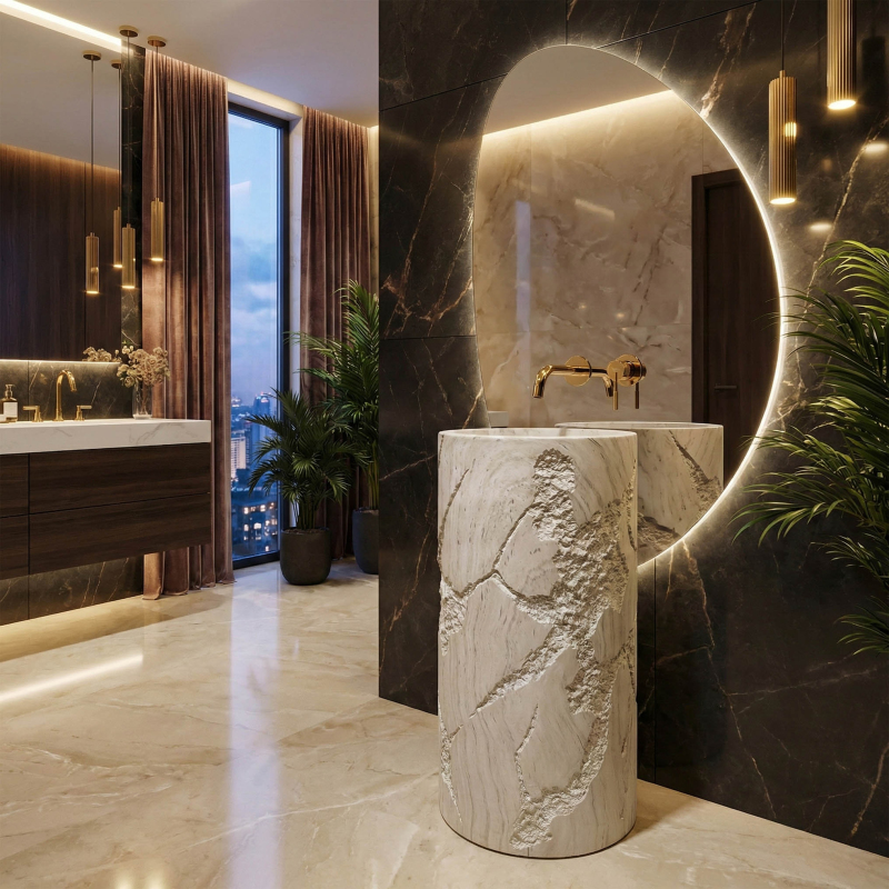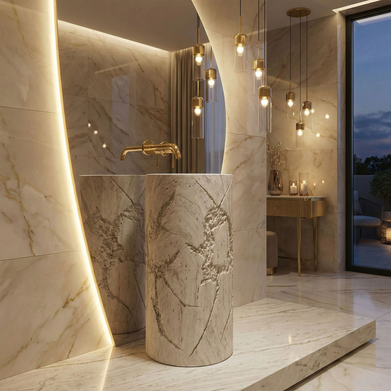 Vneste do svého interiéru akcent přírody a luxusu výběrem volně stojícího umyvadla Rea Revello s okouzlující strukturou imitující kámen. Jde o nabídku, která dokonale spojuje surovou krásu s elegancí glamour stylu a stává se ústředním bodem každé moderní koupelny. Je vyrobeno ze kompozitního umělého kamene, takže zaručuje nejen působivý vizuální efekt, ale také trvanlivost a odolnost při každodenním používání.Imitace přírodního kamene, která dodává interiéru jedinečný a prestižní charakterVolně stojící typ umožňující libovolné a efektní uspořádání prostoruKomfortní průměr přes 40 cm zajišťující pohodlí při každodenní toaletěMateriál Artificial Stone – vysoce kvalitní syntetický kámen (kompozit), který se vyznačuje výjimečnou trvanlivostí, odolností vůči mechanickému poškození a dokonale hladkým vnitřním povrchem.Hladký vnitřek mísy, který je mimořádně snadný na údržbu čistotyIdeální doplněk nástěnné nebo podlahové baterie pro jednotný vzhledVolbou modelu Rea Revello sázíte na nekompromisní design a funkčnost ve velikosti XXL. Tento monolitický tvar se skvěle hodí do prostorných koupelnových salonů, kterým dodá třídu a vytříbenost. Díky pevné konstrukci a preciznímu zpracování je toto umyvadlo investicí do krásy, která obstojí ve zkoušce času a bude lahodit oku každý den.