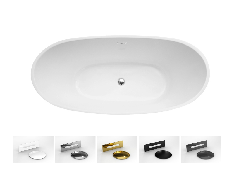 Součástí vany je i odtoková souprava click-clack s přepadem v barvách: