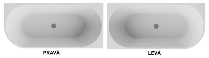 - Černá lesklá (venkovní strana vany) / bílá lesklá barva (vnitřní část vany)