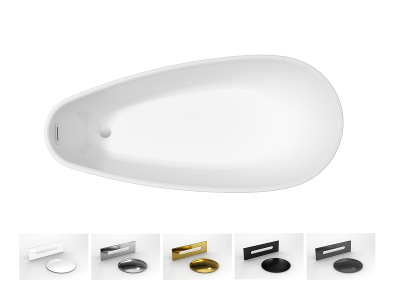 Součástí vany je i odtoková souprava click-clack s přepadem v barvách: