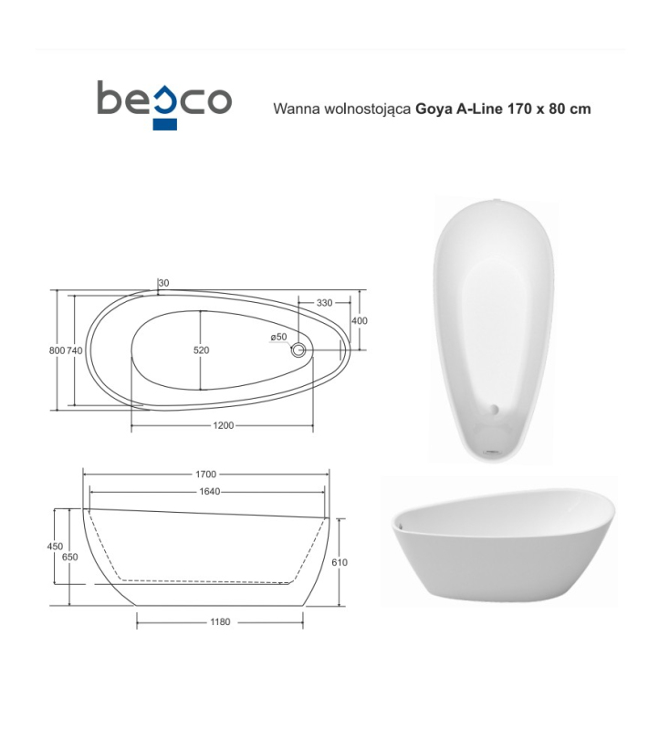 Oblé tvary, robustní a asymetrický vzhled, to je vana GOYA A-LINE. Díky hmotnosti je manipulace s vanou velmi snadná. Vana i vnější plášť tvoří kompaktní celek. Vana se standardně dodává v zářivě bílé barvě. Akrylátový povrch vany umožňuje jeho snadnou údržbu. Vanu není třeba obezdívat a obkládat. Součástí vany je také odtokový systém click-clack s přepadem v chromu ve standardním provedení. Dále nabízíme tyto sifony za příplatek v dalších 4 barvách (zlatá, černá, bílá a grafitová).