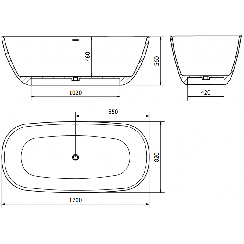 Technické údaje: Rozměry: 170 x 82 cm Výška: 56 cm Hloubka: 46 cm Instalace: Volně stojící Materiál: Konglomerát Barva: Matná bílá Povrchová úprava: Matná bílá Otvor pro přepad: Ano Otvor pro baterii: Ne Sifon a zátka click-clack jsou součástí dodávky Odolnost vůči baterii, baterii a UV záření