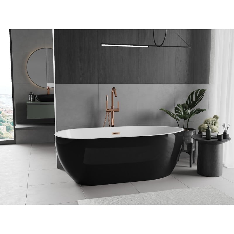 Volně stojící vana Mexen Eos 150 x 75 cm, bílá/černá, přepad z kartáčované mědi - 52471507575-65