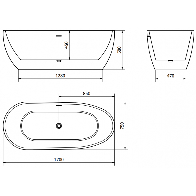 Specifikace produktu: Rozměry: 170 x 75 cm Výška: 58 cm Hloubka: 45 cm Instalace: Volně stojící Materiál: Sanitární akrylát Barva: Bílá/Černá Povrchová úprava: Chrom Otvor pro přepad: Ano Otvor pro baterii: Ne Sifon a zátka click-clack jsou součástí balení Odolné vůči baterii a UV záření