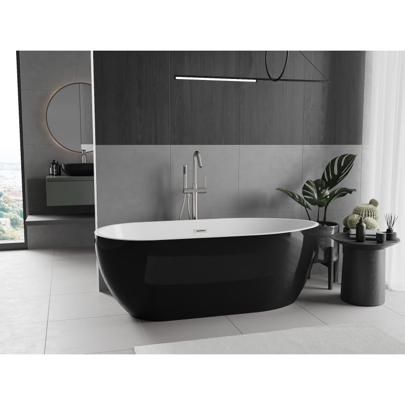 Specifikace produktu: Rozměry: 170 x 75 cm Výška: 58 cm Hloubka: 45 cm Instalace: Volně stojící Materiál: Sanitární akrylát Barva: Bílá/Černá Povrchová úprava: Kartáčovaný nikl Otvor pro přepad: Ano Otvor pro baterii: Ne Sifon a zátka click-clack jsou součástí balení Odolné vůči baterii a UV záření