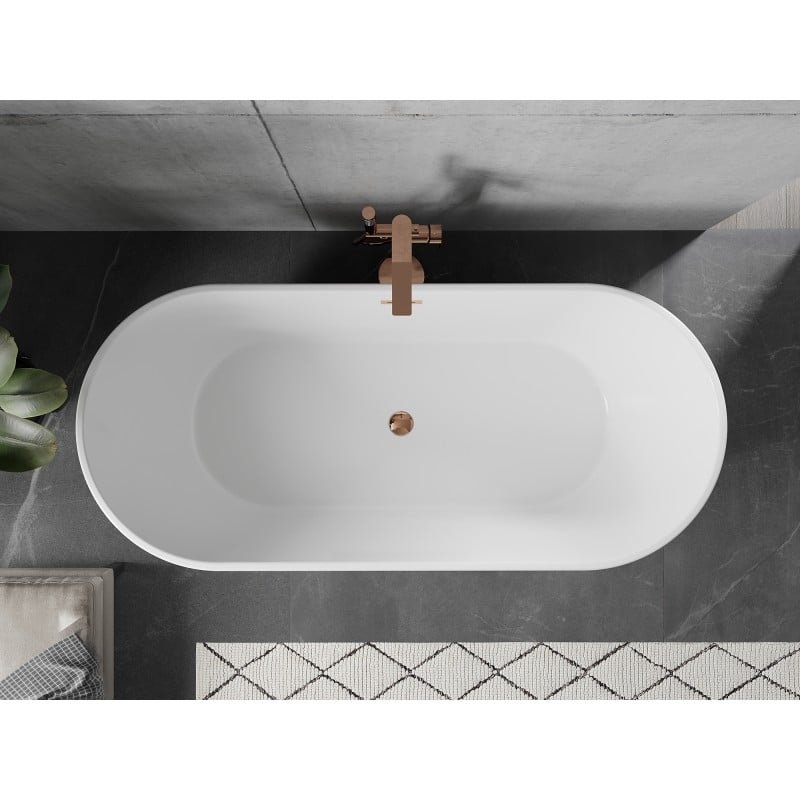 Volně stojící vana Mexen Flavia 150 x 75 cm, bílá/černá, růžovo-zlatý přepad - 54031507575-60