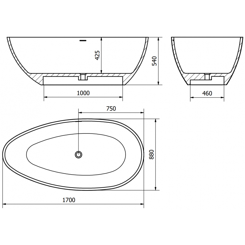 Technické údaje: Rozměry: 170 x 88 cm Výška: 54 cm Hloubka: 42,5 cm Instalace: Volně stojící Materiál: Konglomerát Barva: Matný beton Povrchová úprava: Matný beton Otvor pro přepad: Ano Otvor pro baterii: Ne Sifon a zátka click-clack jsou součástí dodávky Odolnost vůči baterii, baterii a UV záření