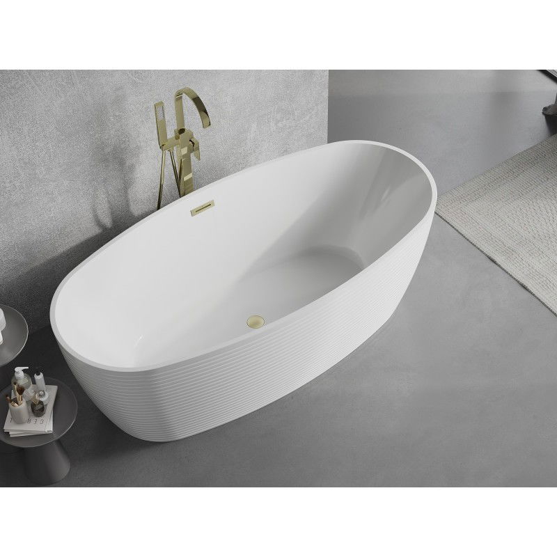 Volně stojící vana Mexen Lira s motivem 170 x 80 cm, bílá, přepad kartáčovaný zlatý - 52831708000-55