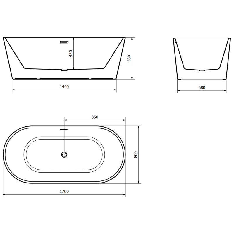 Specifikace produktu: Rozměry: 170 x 80 cm Výška: 58 cm Hloubka: 45 cm Instalace: Volně stojící Materiál: Sanitární akrylát Barva: Bílá Povrchová úprava: Kartáčovaný nikl Otvor pro přepad: Ano Otvor pro baterii: Ne Sifon a zátka click-clack jsou součástí balení Odolné vůči baterii a UV záření