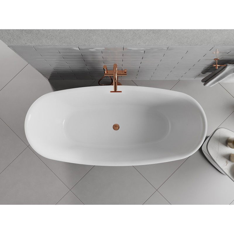 Specifikace produktu: Rozměry: 170 x 75 cm Výška: 58 cm Hloubka: 45 cm Instalace: Volně stojící Materiál: Sanitární akrylát Barva: Bílá/Černá Povrchová úprava: Růžové zlato Otvor pro přepad: Ano Otvor pro baterii: Ne Sifon a zátka click-clack jsou součástí balení Odolné vůči baterii a UV záření