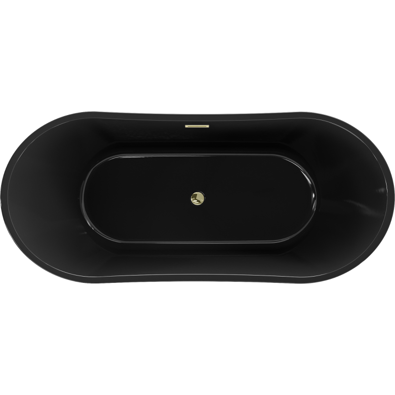 Specifikace produktu: Rozměry: 170 x 80 cm Výška: 72 cm Hloubka: 44,5 cm Instalace: Volně stojící Materiál: Sanitární akrylát Barva: Černá Povrchová úprava: Zlatá Otvor pro přepad: Ano Otvor pro baterii: Ne Sifon a zátka click-clack jsou součástí dodávky Odolné vůči baterii, baterii a UV záření