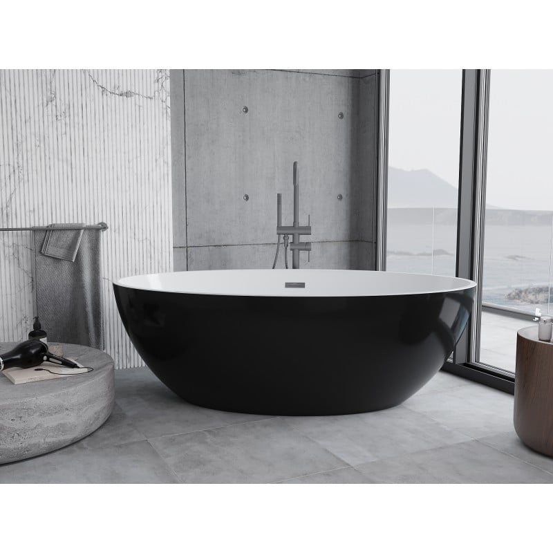 Volně stojící vana Mexen Nike 175 x 100 cm, bílá/černá, přepad v barvě gun metal - 54071751075-95