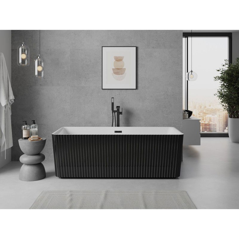 Volně stojící vana Mexen Nila s drážkovaným povrchem 170 x 75 cm, bílá/černá, černý přepad - 52841708075-70