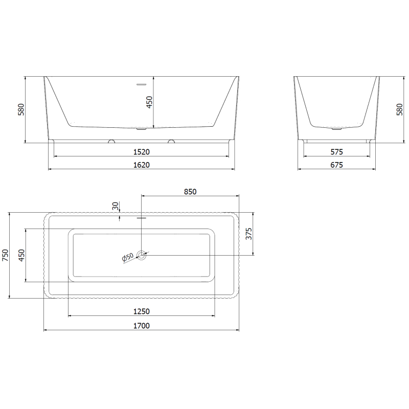 Specifikace produktu: Rozměry: 170 x 75 cm Výška: 58 cm Hloubka: 45 cm Instalace: Volně stojící Materiál: Sanitární akrylát Barva: Bílá/Černá Povrchová úprava: Chrom Konstrukce: Drážkovaná Otvor pro přepad: Ano Otvor pro baterii: Ne Sifon a zátka click-clack jsou součástí dodávky Odolné vůči baterii, baterii a UV záření