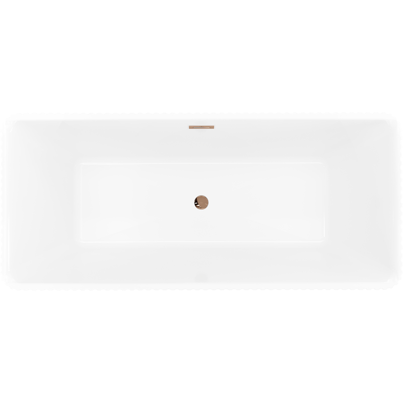 Specifikace produktu: Rozměry: 170 x 75 cm Výška: 58 cm Hloubka: 45 cm Instalace: Volně stojící Materiál: Sanitární akrylát Barva: Bílá Povrchová úprava: Růžové zlato Konstrukce: Drážkovaná Otvor pro přepad: Ano Otvor pro baterii: Ne Sifon a zátka click-clack jsou součástí dodávky Odolné vůči baterii, baterii a UV záření