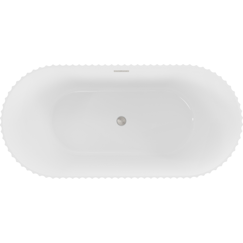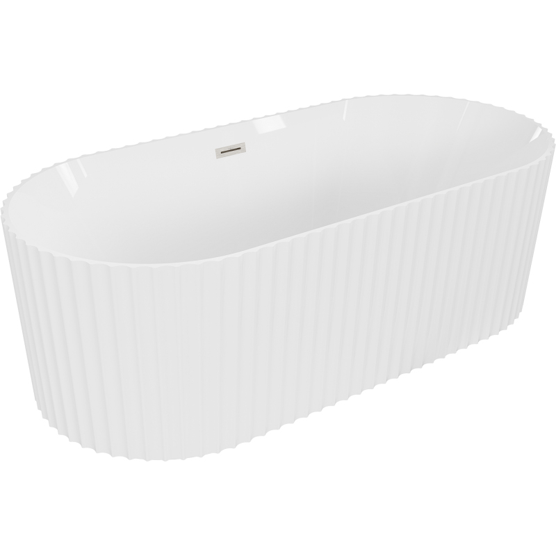 Volně stojící vana Mexen Paola s drážkovaným povrchem 150 x 75 cm, lesklá bílá, přepad kartáčovaný nikl - 52721507500-97