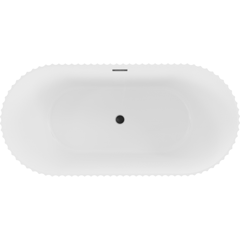 Volně stojící vana Mexen Paola s drážkovaným povrchem 150 x 75 cm, matná bílá, černý přepad - 52721507501-70