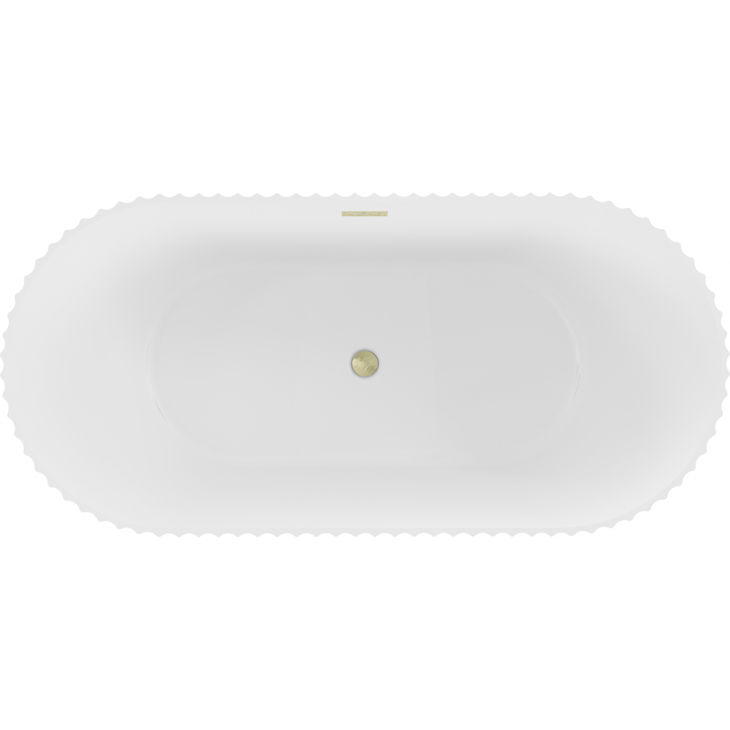 Volně stojící vana Mexen Paola s drážkovaným povrchem 150 x 75 cm, matná bílá, přepad kartáčovaný zlatý - 52721507501-55