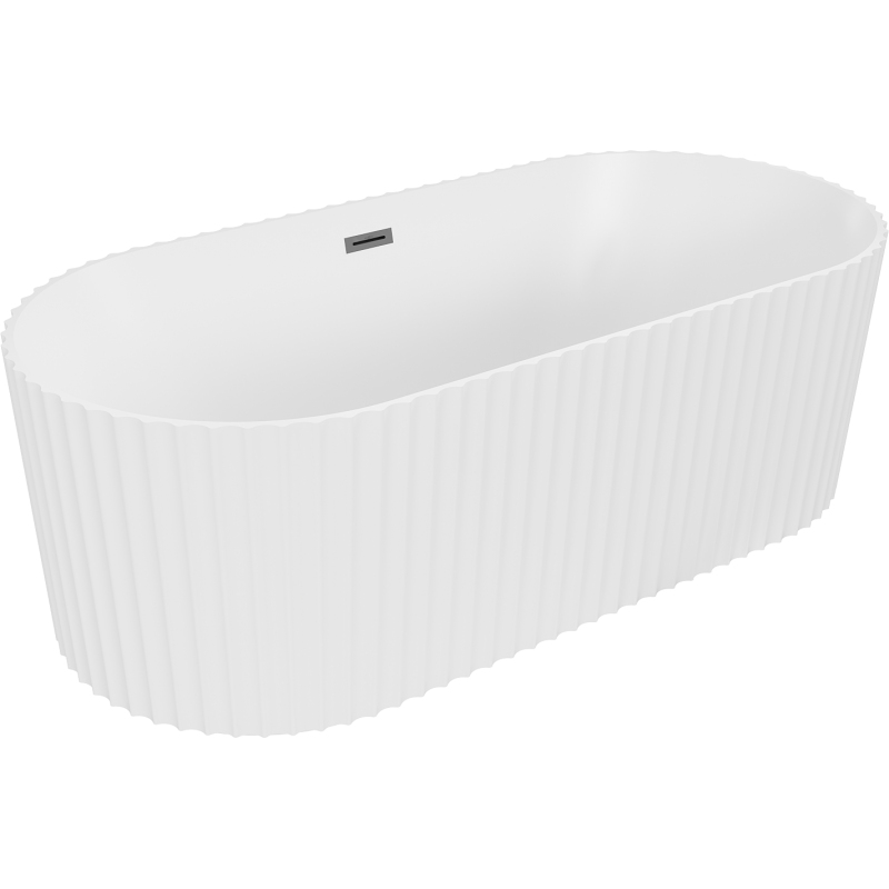 Volně stojící vana Mexen Paola s drážkovaným povrchem 150 x 75 cm, matná bílá, přepad v barvě gun metal - 52721507501-95